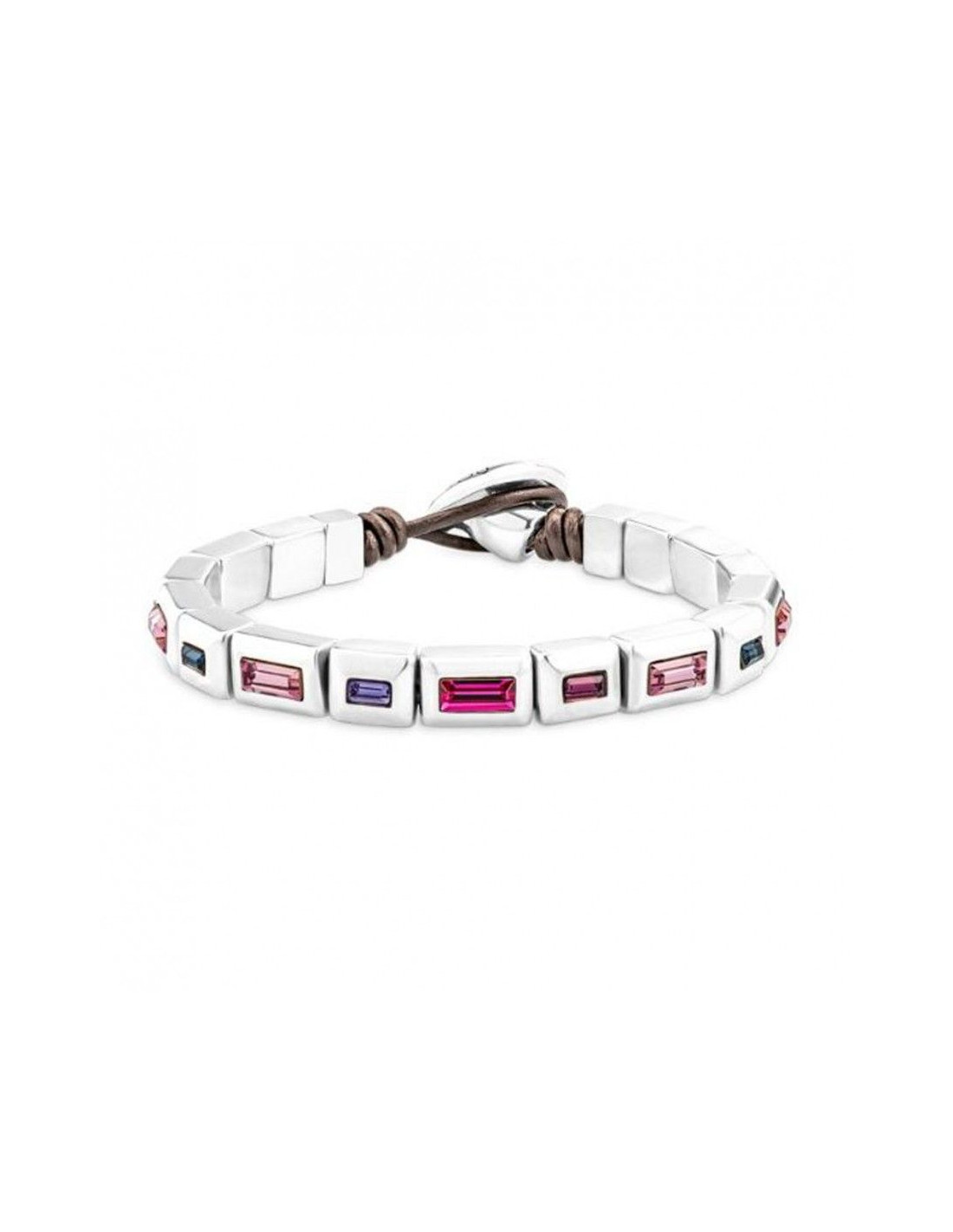 Pulsera con diseño rectangular con diferentes tonos rosas en cristal de Swaroski junto con un toque azul marino, un diseño que no pasa de moda y que combina a la perfección con otras pulseras que quieras combinar o incluso reloj. Talla M.