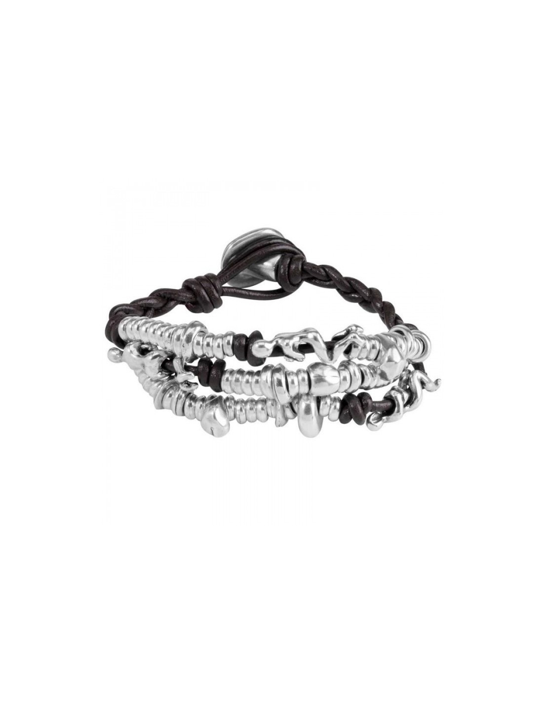 Pulsera muy del rollo de Uno de 50, con varias tiras como si llevases tres pulseras juntas con piezas irregulares y artesanales. Talla M.